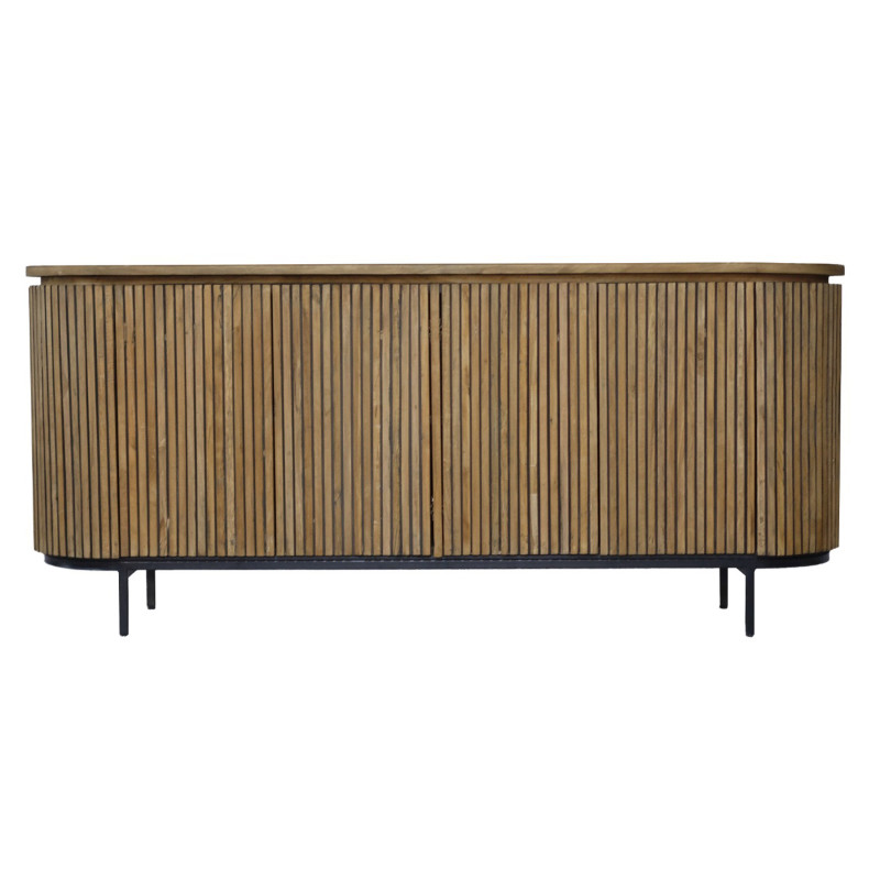 Scopri la raffinata eleganza della collezione PIANA, una linea lussuosa realizzata in legno di teak certificato sostenibile e caratterizzata da un'elegante base in acciaio nero. La collezione si distingue per la forma ovale e le linee giocose, abbinate all'aspetto naturale del legno di teak e alle ante senza maniglia che si integrano perfettamente nel design. Questa elegante finitura offre un look minimalista che mette in risalto la bellezza naturale del legno di teak.