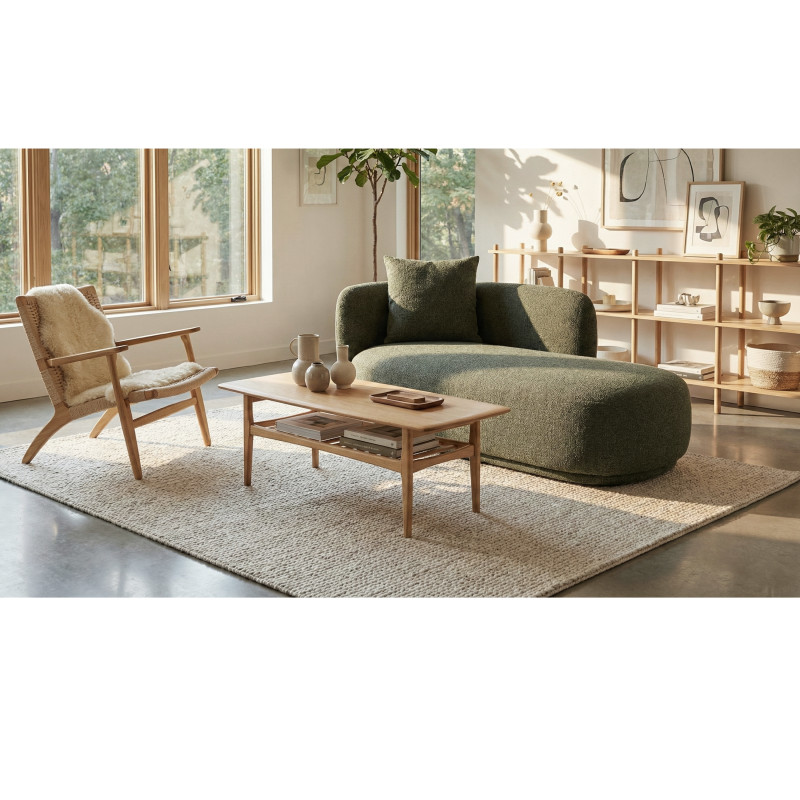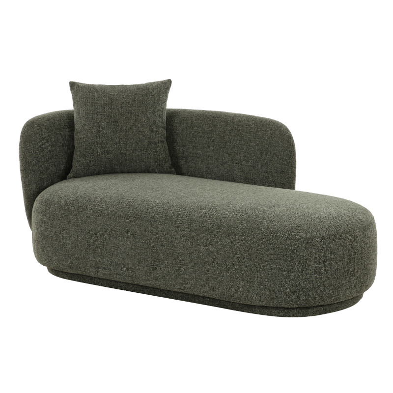 Eleganza colorata. Questa chaise longue in tessuto verde dona un tocco di freschezza e carattere. La sua seduta lunga garantisce uno stile distintivo e un comfort eccezionale. La combinazione perfetta di materiale e design per un interno dinamico.