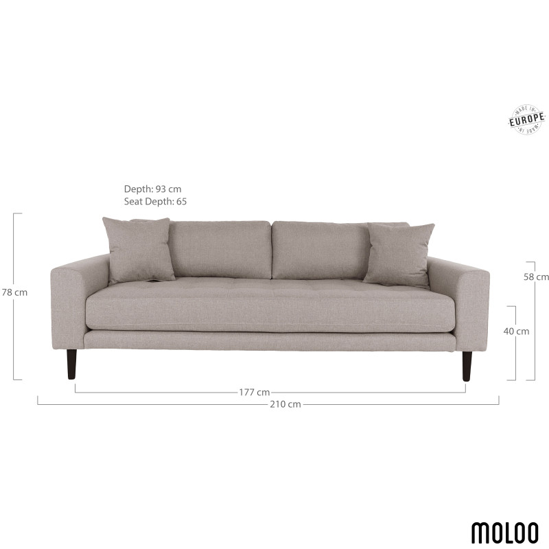 Collezione FRED: Divano a 3 posti in tessuto color tortora