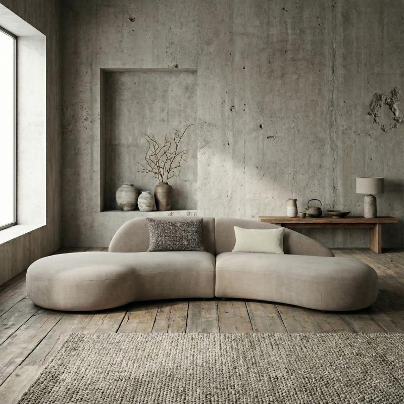 Collezione MIAMI: Divano angolare asimmetrico Design contemporaneo, formato XXL! Questo divano angolare in tessuto color tortora si distingue per la sua forma asimmetrica, creando uno spazio relax unico. Il suo design basso e avvolgente invita al relax. Il perfetto connubio tra materiali e linee per un soggiorno moderno. Comfort avvolgente garantito. Dimensioni: L 318 x P 90 x A 72 cm