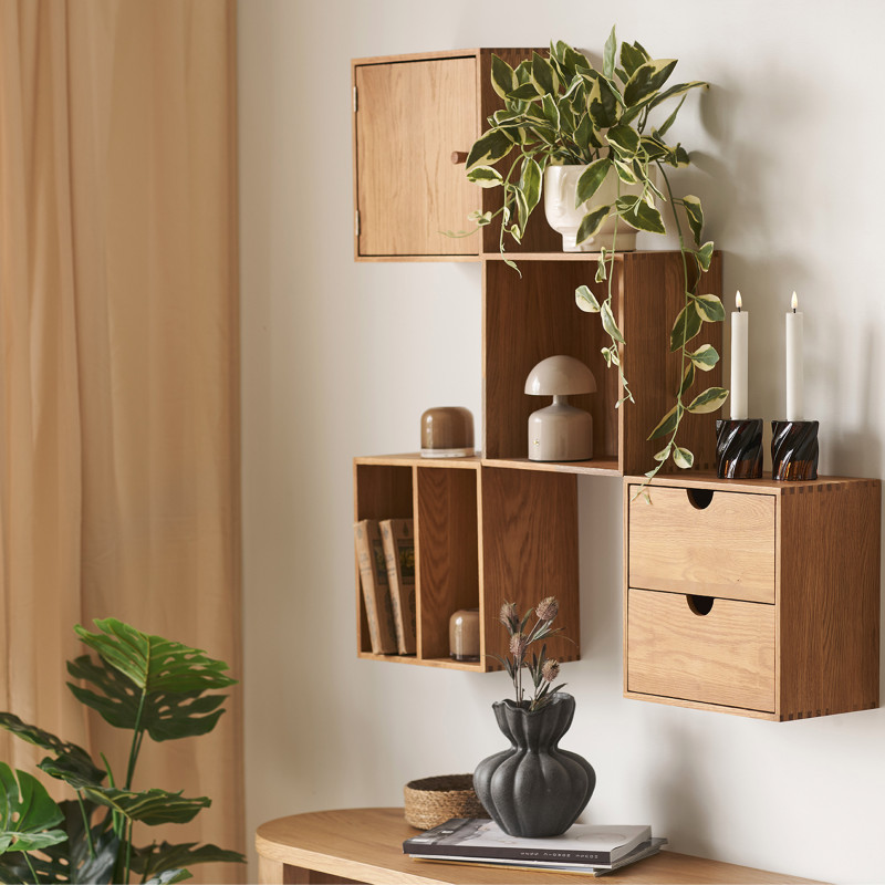 Collezione KUB: Cubo da parete con 2 cassetti, Rovere massello Funzionalità ed eleganza. Questo cubo da parete in rovere massello naturale con due cassetti è perfetto per riporre oggetti in modo ordinato e discreto. Il rovere ne garantisce la robustezza. La combinazione perfetta di materiale e design per un mobile pratico. Abbinabile ad altri articoli della collezione. Dimensioni: L 30 x P 18 x A 30 cm