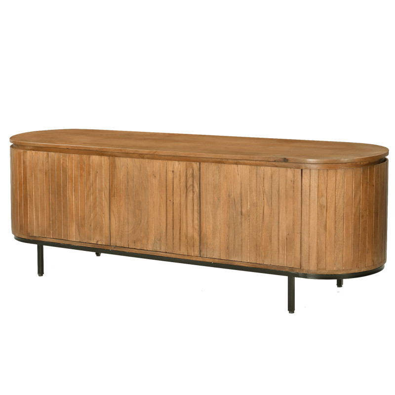 I mobili della collezione MENTON sono realizzati in pregiato legno di mango e sono disponibili nelle finiture noce e naturale. Caratteristica di questa collezione è la forma ellittica e i lati curvi, uniti a un gioco di linee verticali, un omaggio allo stile retrò chic!