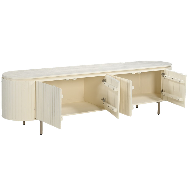 Mobile TV presentato in versione da 210 cm con 4 ante e 2 ampi spazi di contenimento.