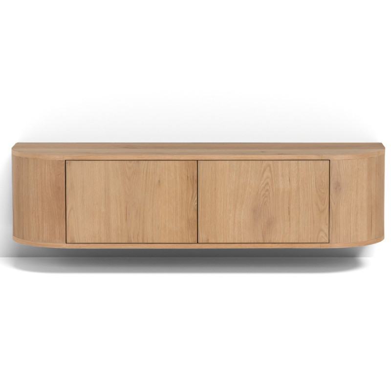 Mobile TV da appendere alla parete (fornito senza elementi di fissaggio, da adattare in base al supporto) presentato in rovere espresso, larghezza 140 cm e 2 ante.
