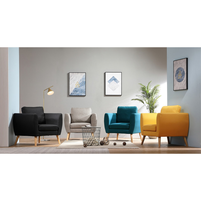 Plongez dans une vague de modernisme avec ce fauteuil Scandinave en Tissu curry !