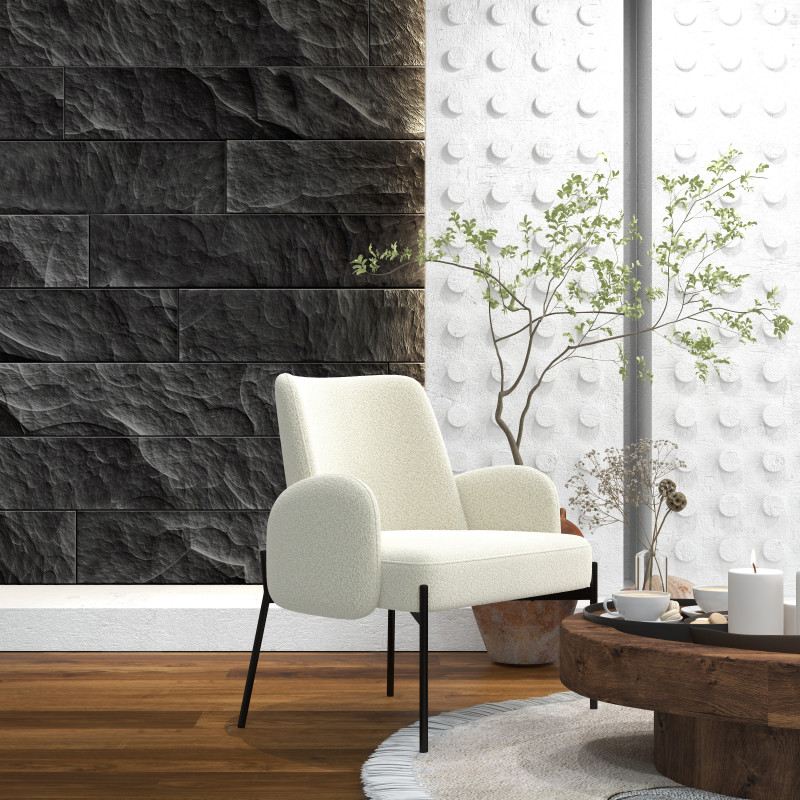 La forma organica dei braccioli le conferisce un aspetto molto accogliente, la struttura in metallo nero un tocco vintage e il rivestimento in tessuto testurizzato Cosy, disponibile in diversi colori, la rende decisamente in linea con le ultime tendenze dell'arredamento.