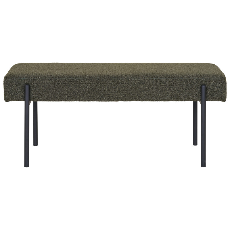 Un tocco di colore. Questa panca in tessuto verde scuro dona un tocco di natura e carattere. Le sue dimensioni compatte la rendono ideale per un'elegante seduta aggiuntiva. La combinazione perfetta di materiale e design per un interno audace.