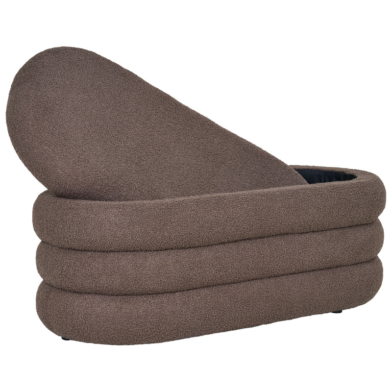 Collezione SLICE: Panca con contenitore in tessuto bouclé Calore funzionale. Questa lunga panca in tessuto bouclé marrone offre un discreto spazio contenitivo. È perfetta per l'ingresso o ai piedi del letto. La combinazione perfetta di materiale e design per un interno elegante e ordinato. Dimensioni: L 103 x P 45 x A 44 cm