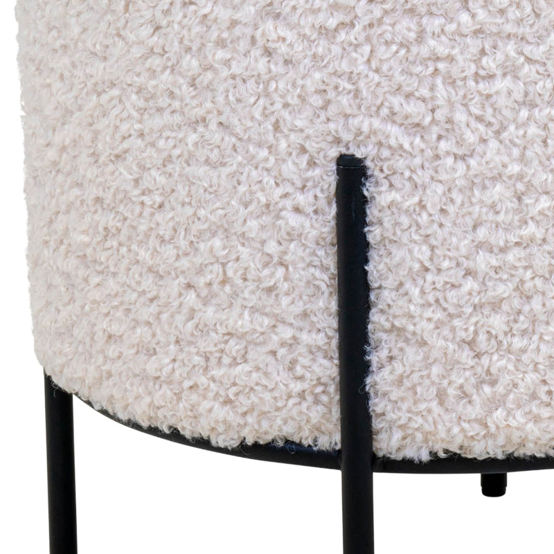 Collezione TED: Pouf in tessuto bouclé Morbidissimo. Questo pouf rotondo in tessuto bouclé écru offre un'ampia seduta extra. La struttura in metallo aggiunge un tocco chic. La combinazione perfetta di materiale e design per un interno accogliente. Dimensioni: L 35 x P 35 x A 37 cm