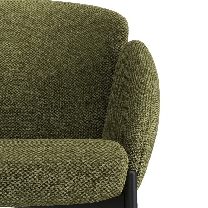 Soffermatevi sulla lavorazione della sottile struttura in metallo nero che sottolinea la seduta e si inserisce tra i braccioli e lo schienale per rafforzare la sua linea molto decisa.
