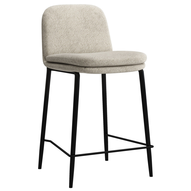 Apprezziamo particolarmente la sua base in metallo nero da 16 mm con piedini affusolati, il lavoro di cucitura con la doppia imbottitura del sedile e schienale e rivestito in tessuto premium loop di colore lino con certificazione Oeko-Tex.