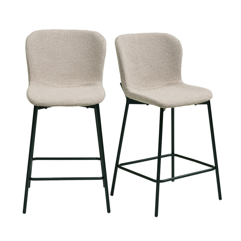 Collezione MINA: Sgabello da bar in tessuto color tortora Altezza ed eleganza sobria. Questo sgabello da bar in tessuto color tortora offre una seduta comoda per la vostra isola cucina. La base in metallo nero garantisce un'elegante stabilità. Il perfetto connubio tra materiale e design per uno spazio accogliente.