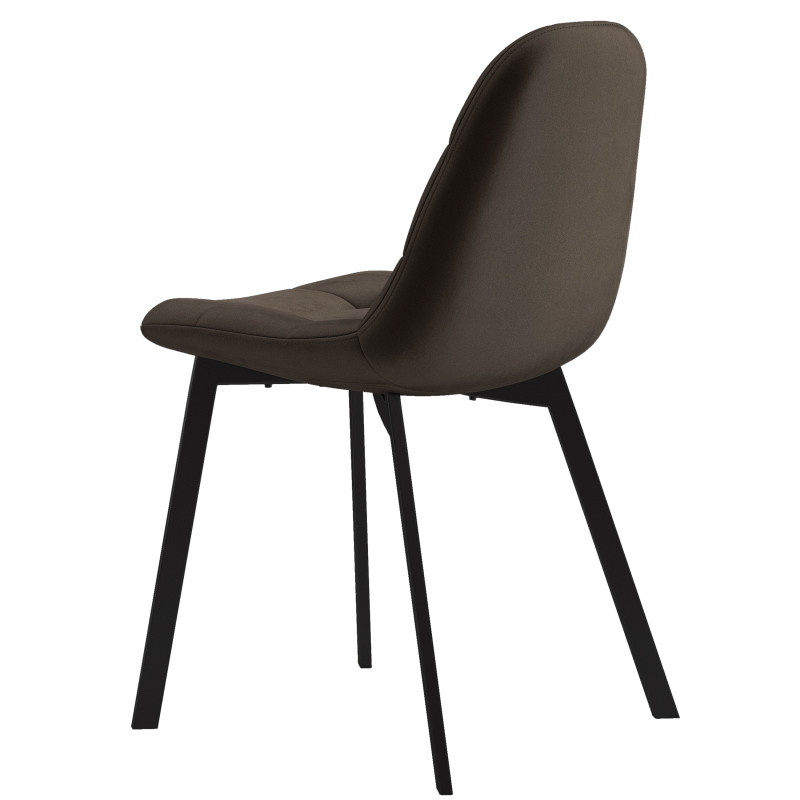 Di ispirazione scandinava rivisitata in uno spirito contemporaneo chic, la sedia STELLIA combina una comoda seduta cucita con una gamba molto moderna in metallo nero. È disponibile in vari colori assortiti, in un bellissimo velluto di facile manutenzione. br />Versione presentata in set da 4 e velluto tortora.