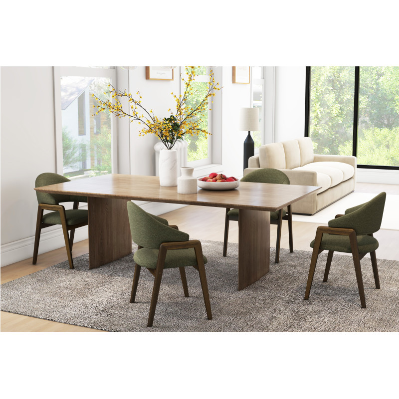Versione presentata in frassino tinto noce e tessuto Trendy verde.
