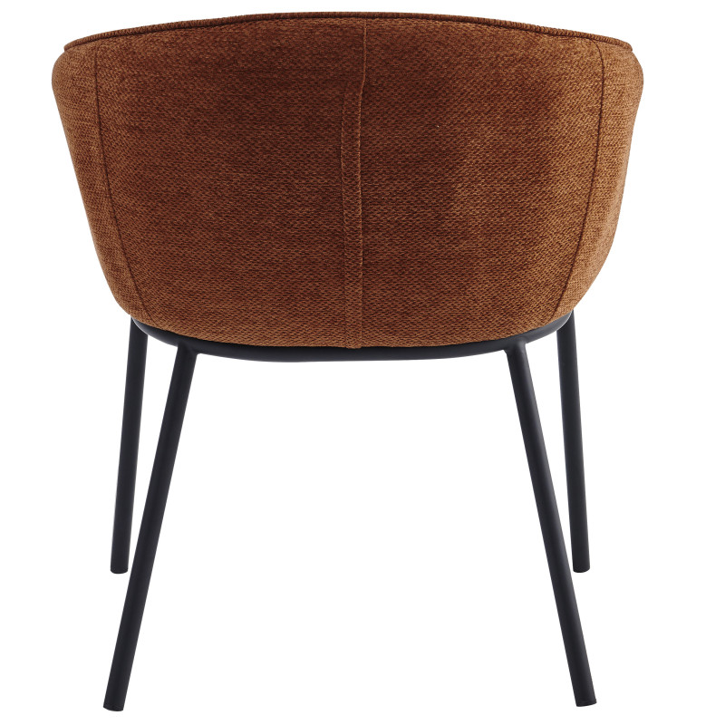 Il suo rivestimento di alta gamma in tessuto Luxury Terracotta, certificato Oeko-Tex, gli conferisce un aspetto molto trendy, con bordature che sottolineano le curve dello schienale.