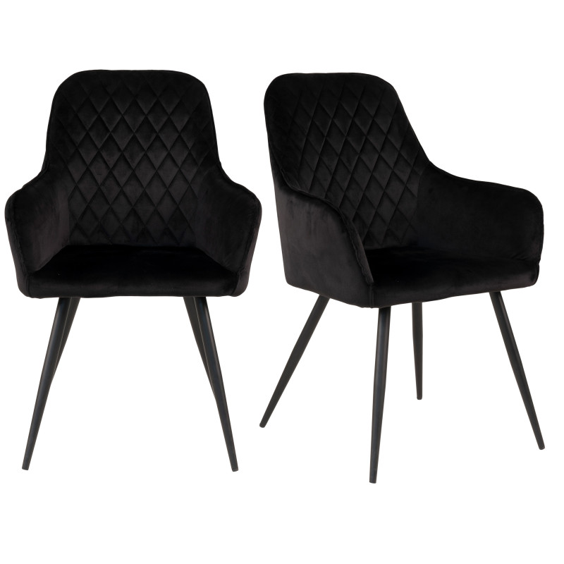 Contrasto e lusso. Questa sedia in velluto nero offre una silhouette pulita e moderna con una seduta sontuosa. La base in metallo nero garantisce un design armonioso. La perfetta combinazione di materiale e linee per uno stile distintivo.