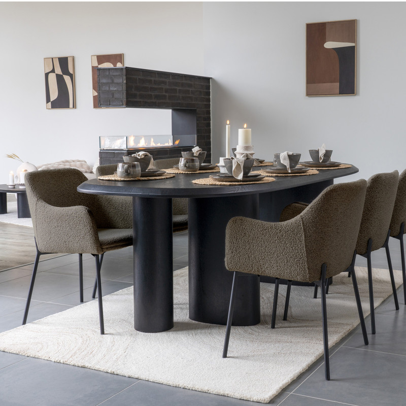 Comodità e stile. Questa sedia da pranzo in bouclé color tortora è ideale per pranzi e cene rilassanti. Il suo colore neutro si integra perfettamente in qualsiasi ambiente. La perfetta combinazione di materiale e design crea uno spazio accogliente.