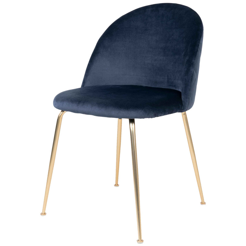 Raffinata brillantezza. Questa sedia in velluto blu sprigiona colori vivaci e una texture ricca. La base in metallo con finitura ottone ne esalta l'aspetto lussuoso. La combinazione perfetta di materiale e linee per un interno vibrante.