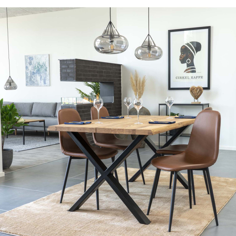 Un look retrò audace. Questa sedia in PU marrone, con il suo stile vintage, è ideale per una sala da pranzo dal carattere deciso. Le gambe in metallo nero creano un contrasto moderno. La combinazione perfetta di materiale e design per uno stile unico.