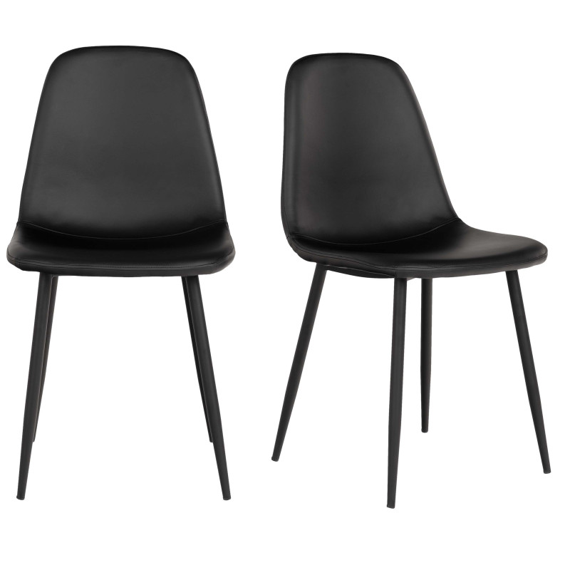 Stile e contrasto. Questa sedia in PU nero dal look vintage è ideale per una sala da pranzo dal carattere forte. La base in metallo nero aggiunge un tocco moderno. La combinazione perfetta di materiale e linee per uno stile unico.