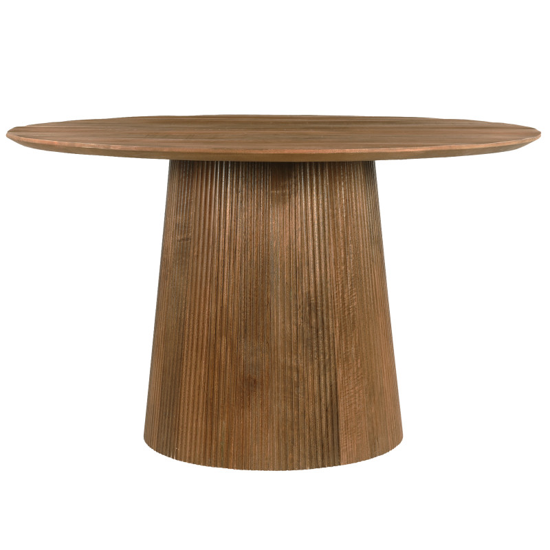 Il tavolo da pranzo rotondo per 4 persone presentato ha un diametro di 130 cm ed è realizzato in finitura naturale.