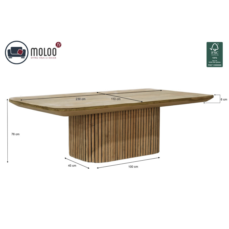 Il tavolo da pranzo presentato può ospitare 12 persone. Il piano del tavolo da 230 cm ha bordi spessi 6 cm e una generosa profondità di 110 cm.