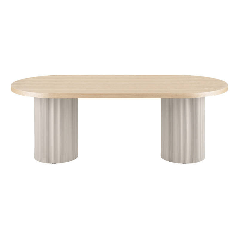 Ampia finitura naturale. Questo tavolo ovale in frassino naturale con gambe scanalate color sabbia combina materiali pregiati e linee morbide. Perfetto per grandi riunioni, porta un tocco di eleganza scandinava nella vostra sala da pranzo. Il perfetto connubio tra materiale e design per un mobile eccezionale.