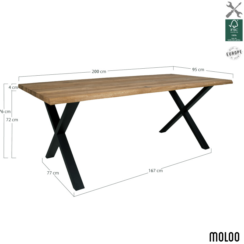 Spazioso e distintivo. Questo tavolo in rovere massello è progettato per grandi riunioni. Il robusto piano e la base in metallo creano un insieme elegante e resistente. Il perfetto connubio tra materiale e design per un mobile eccezionale. Il legno grezzo aggiunge un tocco di fascino naturale. Sono disponibili due prolunghe (2 x 50 cm).