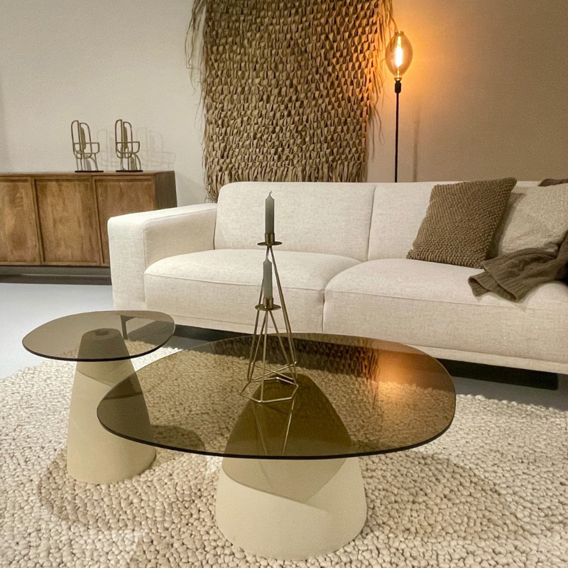 I tavolini DILLON uniscono eleganza e materiali moderni. Realizzati in vetro fumé, che conferisce un aspetto raffinato, e sostenuti da una base in acciaio con un'elegante finitura avorio, DILLON è un perfetto connubio tra design contemporaneo e materiali durevoli, che li rende funzionali ed esteticamente accattivanti per qualsiasi ambiente.