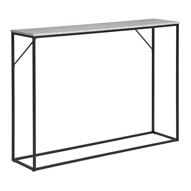 Design elegante e minimalista. Questa consolle in travertino è un vero e proprio elemento di design. Il piano effetto travertino e la struttura in metallo nero si abbinano perfettamente a uno stile contemporaneo. Il perfetto connubio tra materiale e linee per un ingresso elegante.