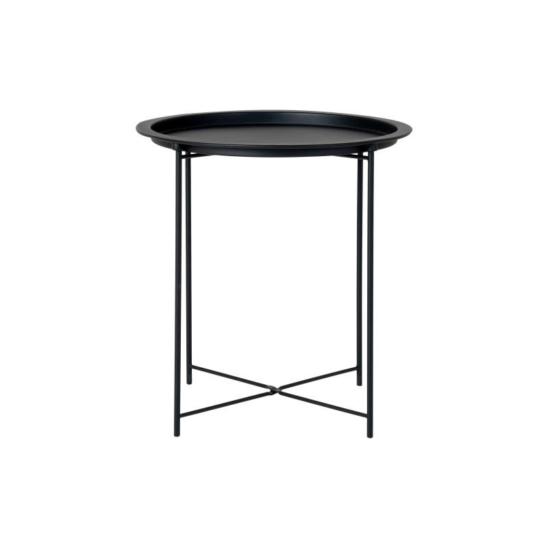 Minimalismo essenziale. Questo tavolino rotondo in acciaio nero è una soluzione semplice ed elegante. Il suo colore scuro e la sua silhouette sottile si integrano perfettamente in qualsiasi arredamento. La combinazione perfetta di materiale e linee per un accessorio discreto.
