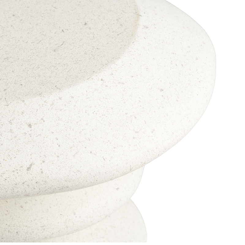 Bellezza minerale grezza. Questo tavolino color pietra, realizzato in argilla fibrorinforzata, è un pezzo unico, realizzato a mano. La sua texture grezza e il colore naturale conferiscono un tocco autentico ai vostri interni. Il perfetto connubio tra materiale e linee per uno stile wabi-sabi.