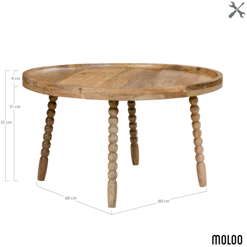 Autenticità grezza. Questo tavolino rotondo in legno massello di mango naturale trasmette immediatamente calore e robustezza. Il suo design semplice esalta la bellezza del legno, mentre la lavorazione artigianale delle gambe aggiunge un tocco di originalità. La combinazione perfetta di materiale e linee per un interno senza tempo.
